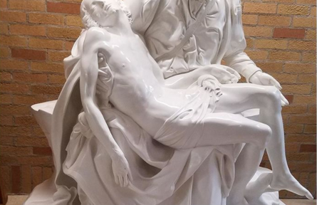 The National Shrine of Our Lady of Good Help in Green Bay, Wisconsin, is the only location in the United States that is Marian apparition approved by the Catholic Church. In 2018, Our Lady of Good Help received a donation of a marble casting of Michelangelo's Pieta featuring Jesus and his mother Mary. The piece shows Jesus on the lap of his mother Mary after Crucifixion. The original sculpture is in St. Peter's Basilica, Vatican City.