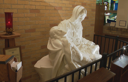 Michelangelo's Pieta's temporary home will be in the 1941 Chapel as construction is set to begin on the site's new building to address capacity issues. The new multi-purpose building will be able to take its 300-chapel capacity to 1,200 people. It will also feature additional conference gathering space and a kitchenette area. Once construction on the new building is complete, the Pieta will be moved in the new building which will focus on the theme, "Mother of Mercy."